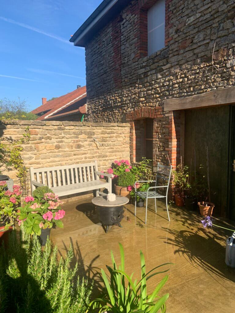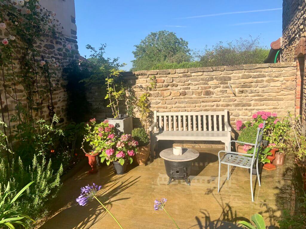 Patio between house and cottage